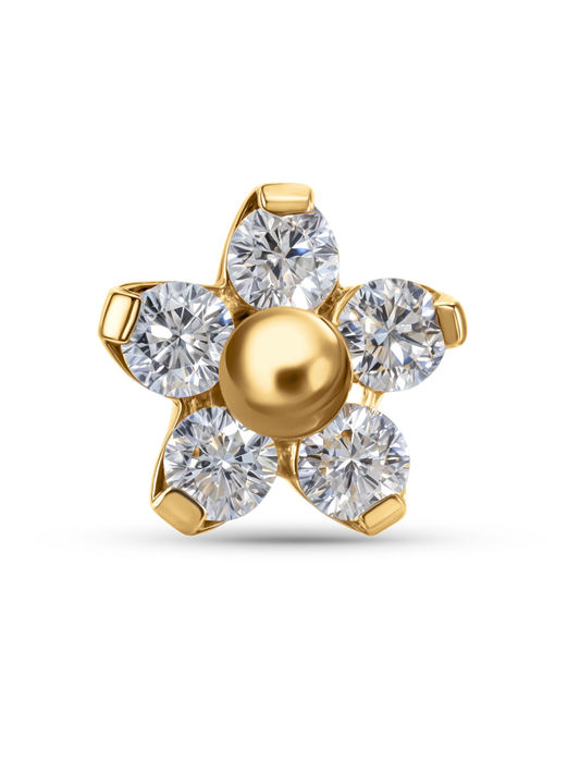 14K Gold & White Topaz Triple Flower Piercing Stud