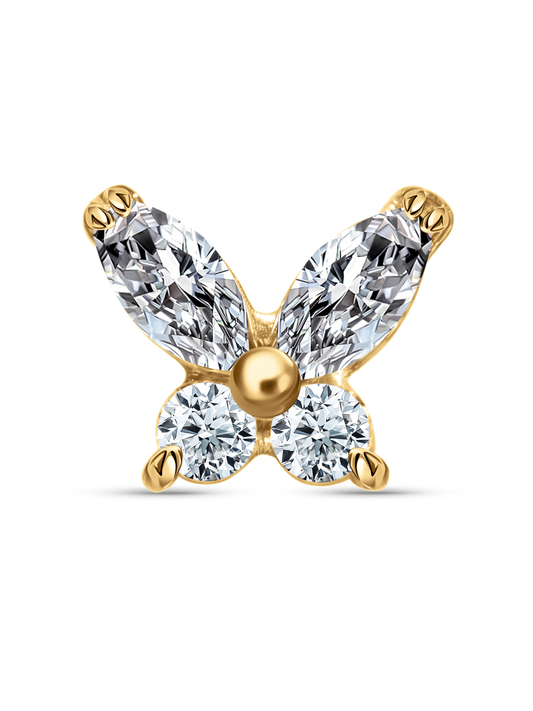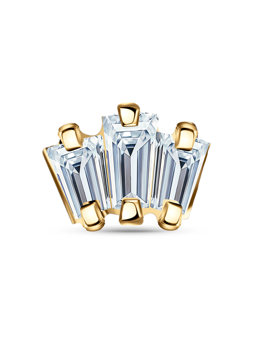 14K Gold & Baguette White Topaz 3D Piercing Stud