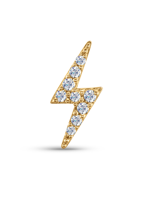 14K Gold Pavé Lightening Bolt Piercing Stud