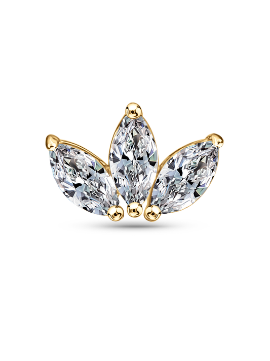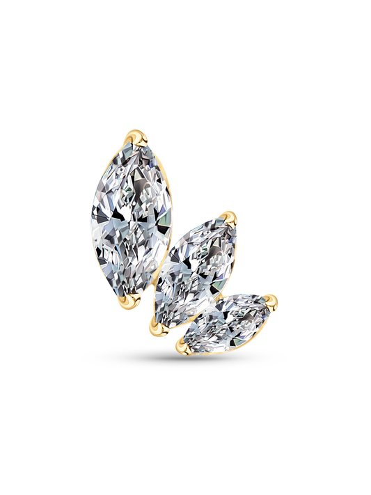 14K Gold & White Topaz Triple Navette Piercing Stud