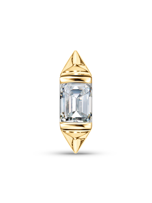 14K Gold & Baguette White Topaz 3D Piercing Stud