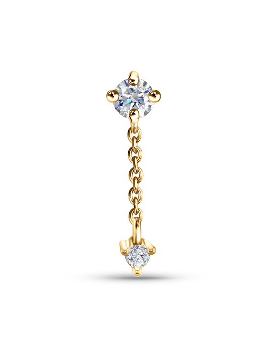 14K Gold & Round White Topaz Chain Drop Piercing Stud