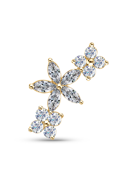 14K Gold & White Topaz Triple Flower Piercing Stud