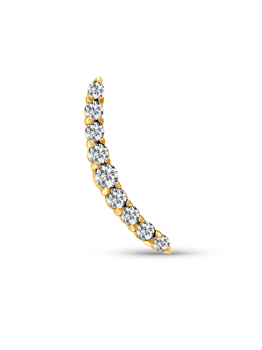14K Gold & White Topaz Pavé Curve Bar Piercing Stud