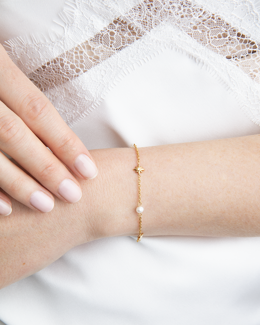 Freshwater Pearl Starburst Chain Bracelet in Gold