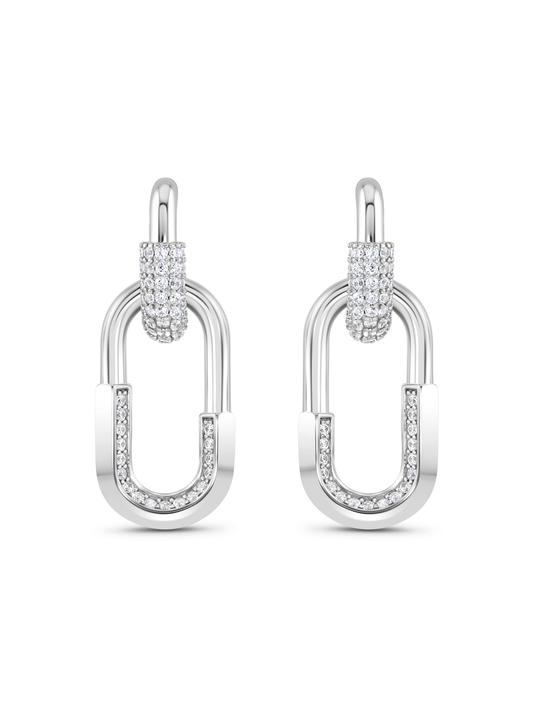 Linked Pavé Drop Hoops In Silver