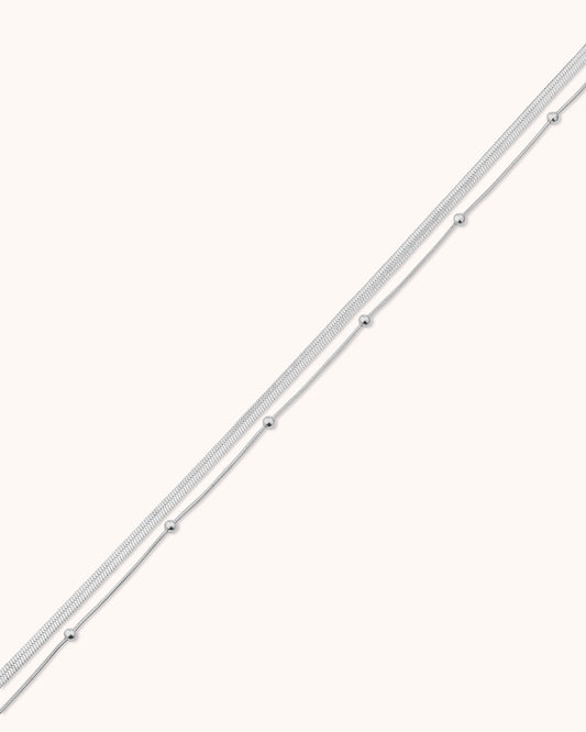 Waterproof Double Layered Station Necklace in Silver