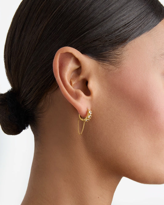 Waterproof Freshwater Pearl Celestial Drop Earrings in Gold