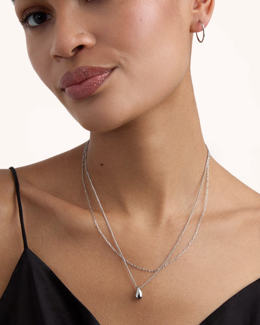 Double Layered Pendant Necklace in Silver