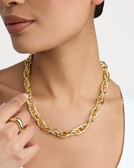 Chunky Double Chain Link Necklace in Gold