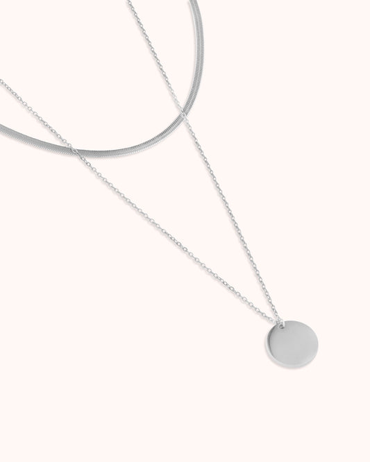 Double Layered Pendant Necklace in Silver