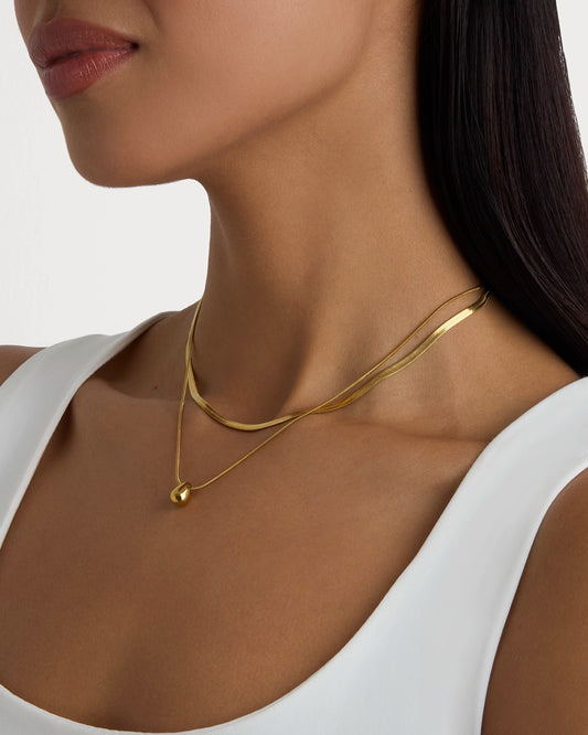 Circle & Snake Chain Necklace Set in Gold