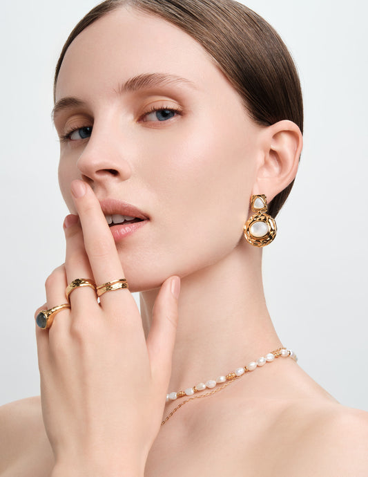 Mother-Of-Pearl & Gold Beaded Necklace In Gold