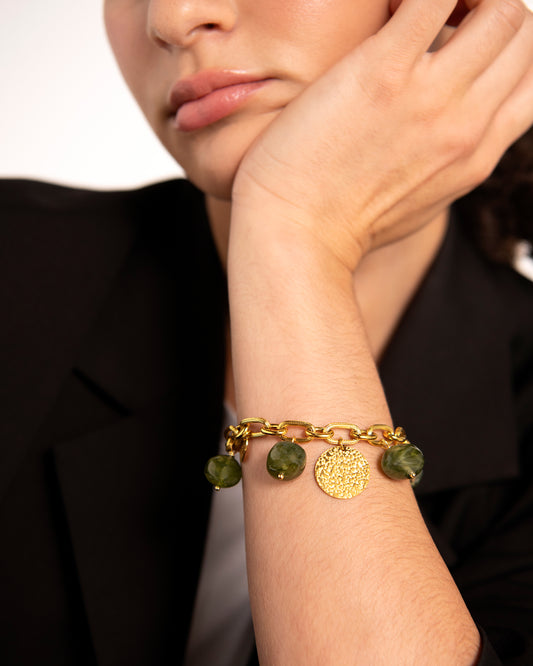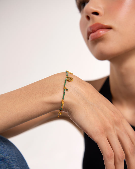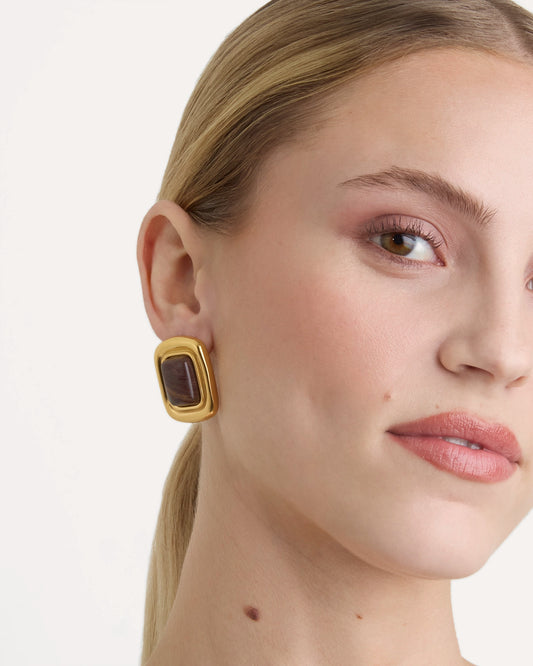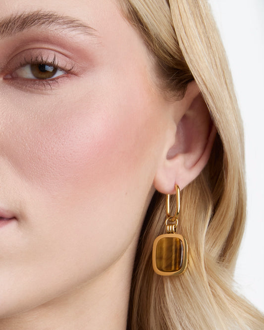 Waterproof Tiger's Eye Drop Hoop Earrings in Gold