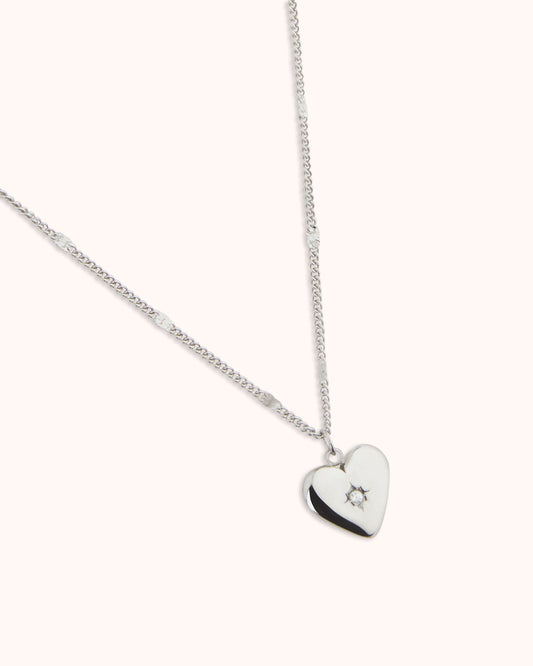 Heart Pendant Chain Necklace in Silver