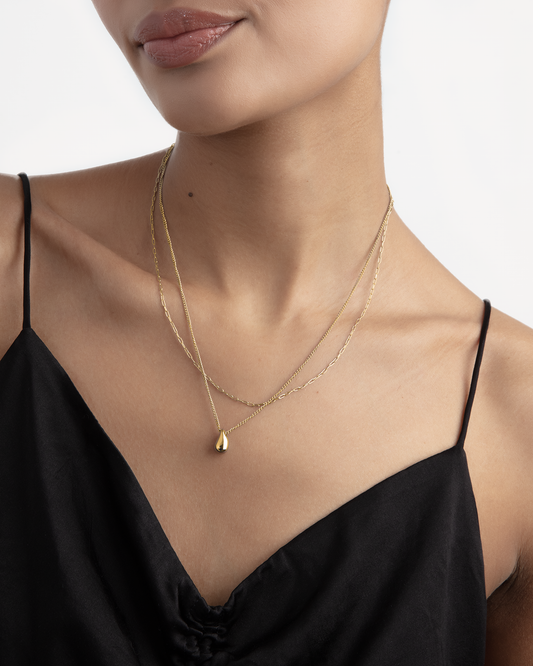 Waterproof Double Layered Small Pendant Necklace in Gold