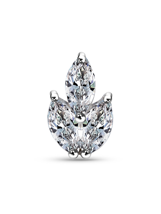 14K Gold & White Topaz Triple Navette Cluster Piercing Stud
