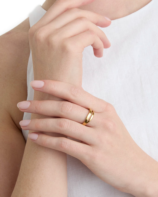 Waterproof Wavy Double Stack Ring in Gold