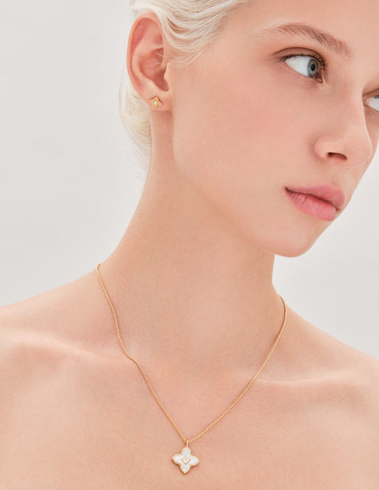 Mother-Of-Pearl Clover Pendant Necklace In Gold