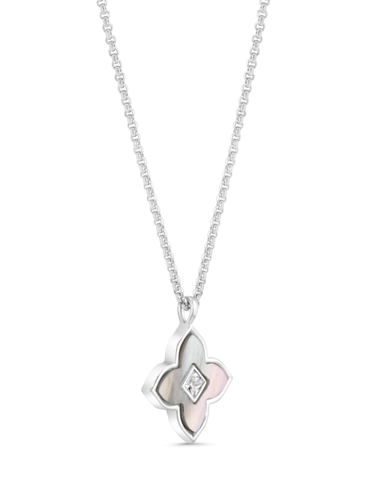 Mother-Of-Pearl Clover Pendant Necklace In Silver