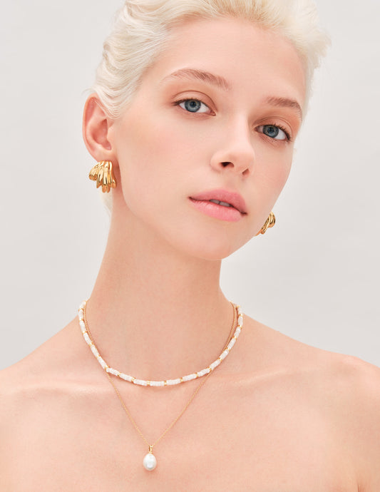 Mother-Of-Pearl & Gold Beaded Necklace In Gold