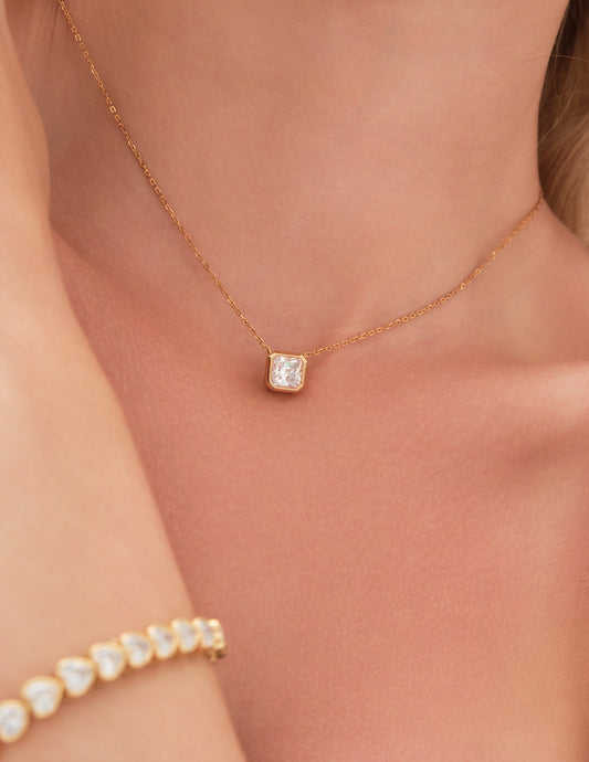 Square Crystal Pendant Necklace In Gold