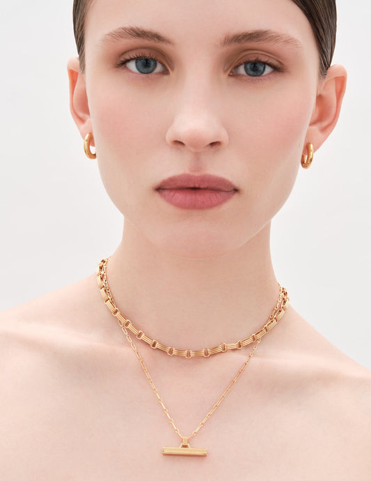Square T-Bar Pendant Necklace in Gold