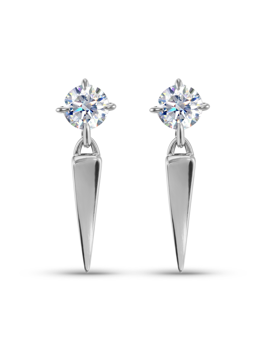 14K Gold & Round White Topaz Chain Drop Piercing Stud