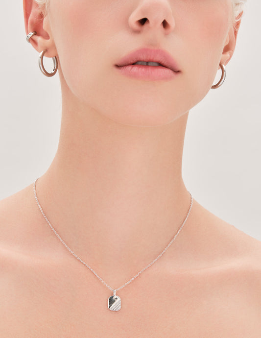Detailed Tag Pendant Necklace In Silver