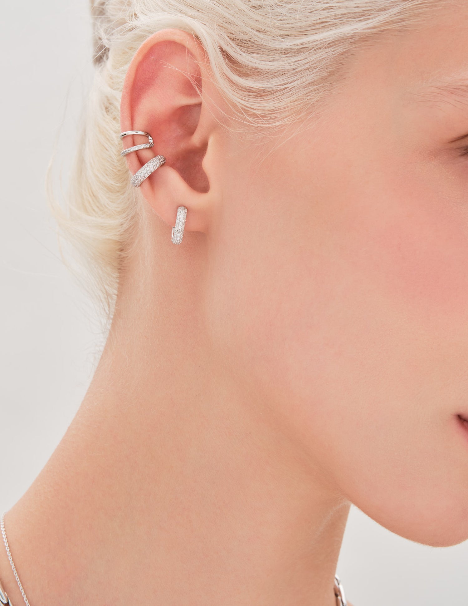 Piercing earring options range from minimalist studs and huggies to statement climbers and hoops, all thoughtfully designed to pair with healed piercings.