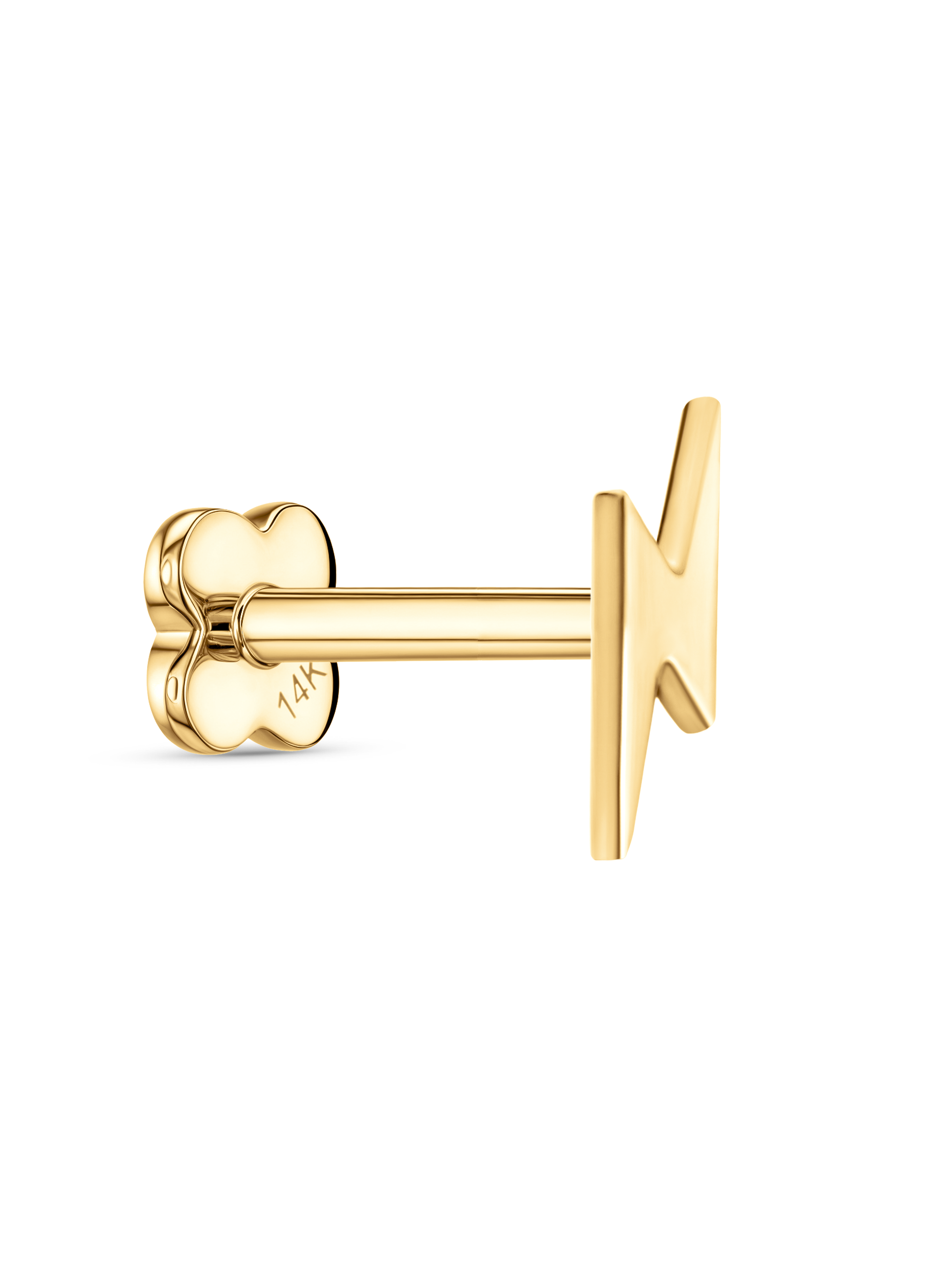 Fine and foundational. Our 14K Gold Lightening Bolt Labret Stud makes a unique evening alternative to studs or huggies. This lightening bolt design is made from 14K Solid Yellow Gold, the labret back is made to fit comfortably on healed piercings.