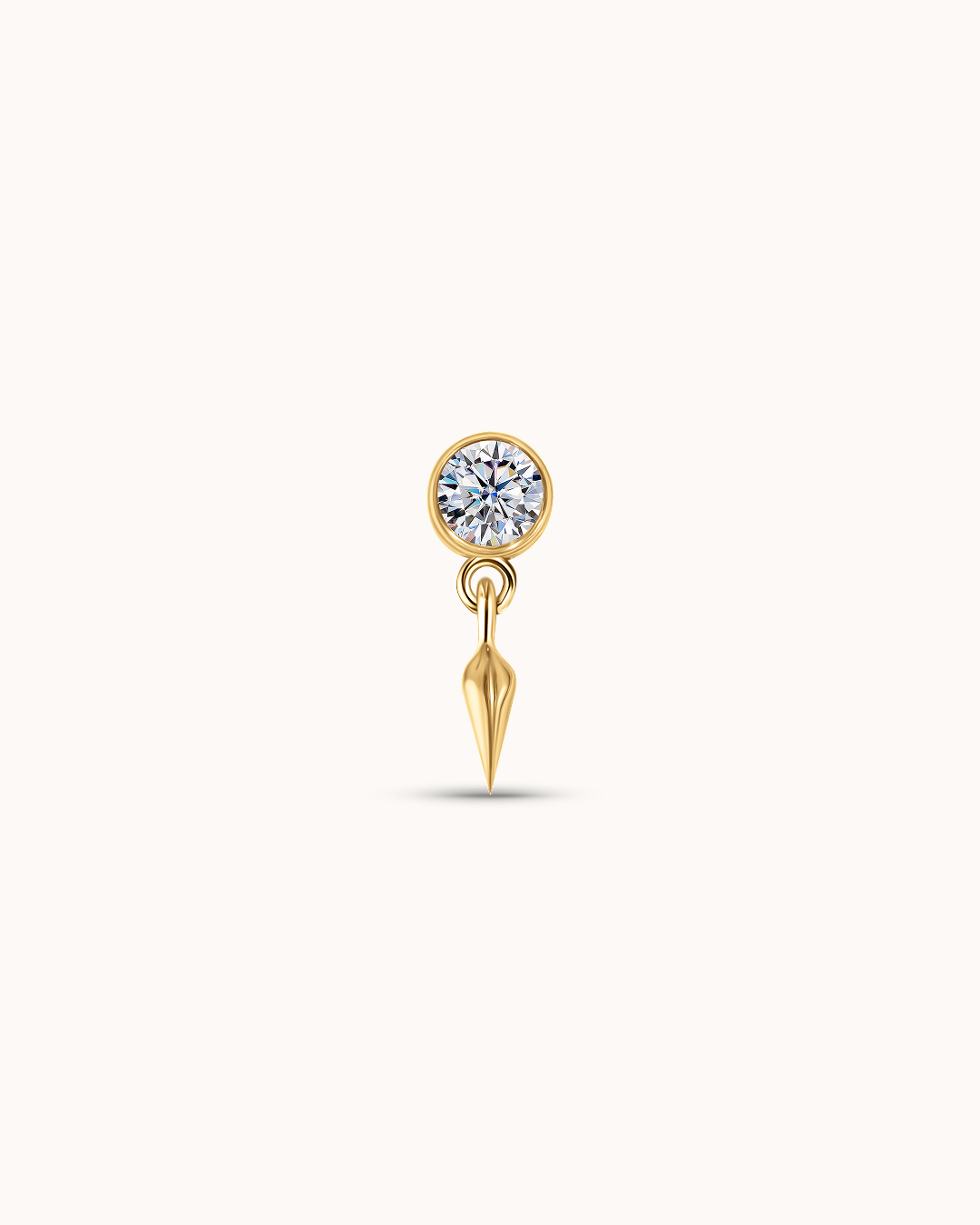14K Gold & Round White Topaz Spike Drop Piercing Stud