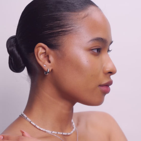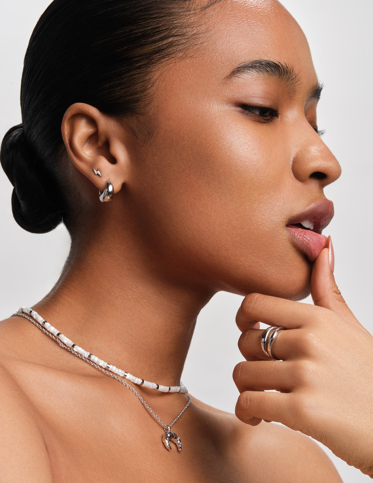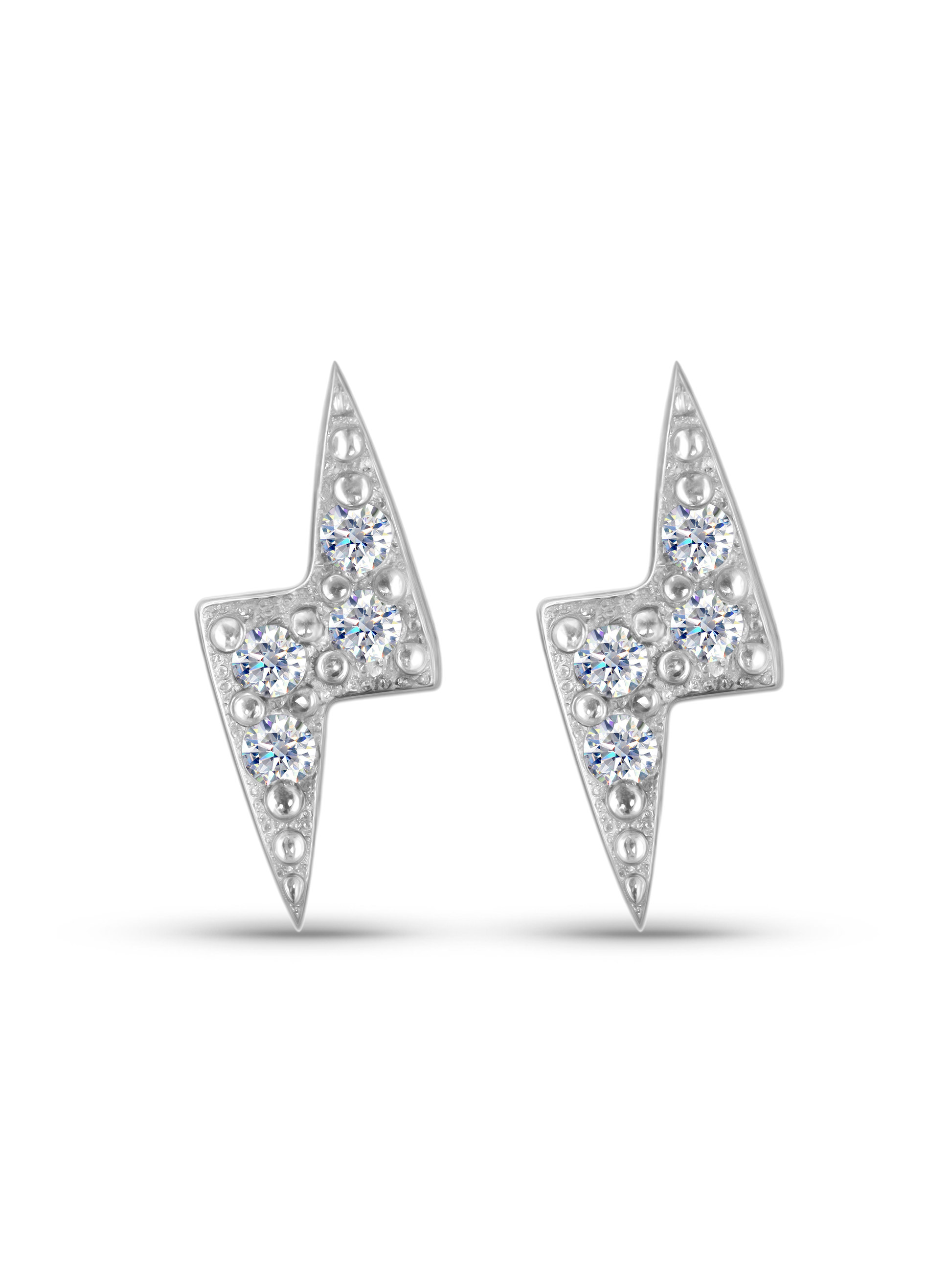 Immediate charge to card. These Crystal Lightening Bolt Studs in Silver can be styled for nights out, and everything in between. Pair with huggies in your ear stack for a mixed look. Set with Cubic Zirconia, these are designed using Rhodium plating for added strength and shine.
