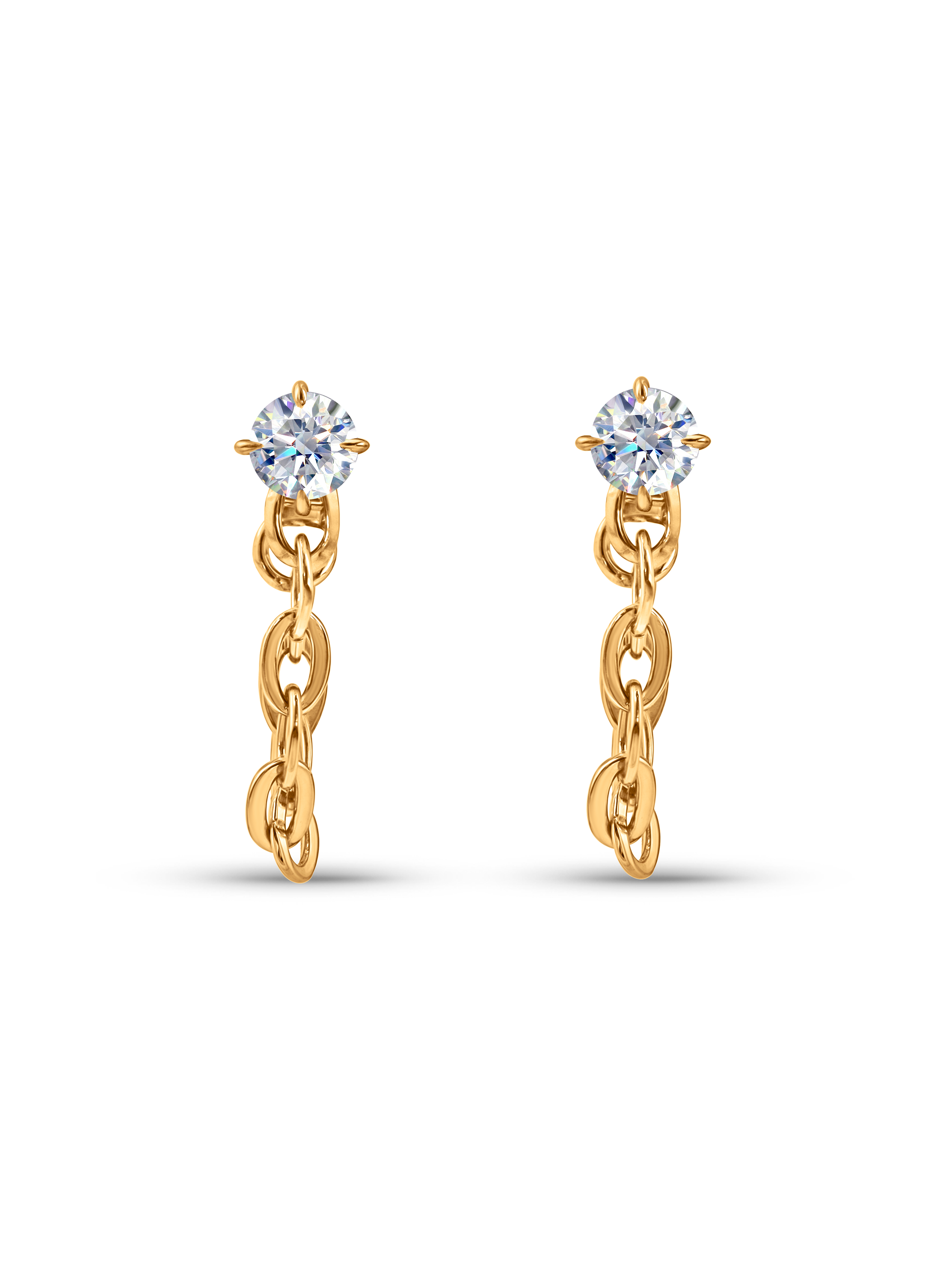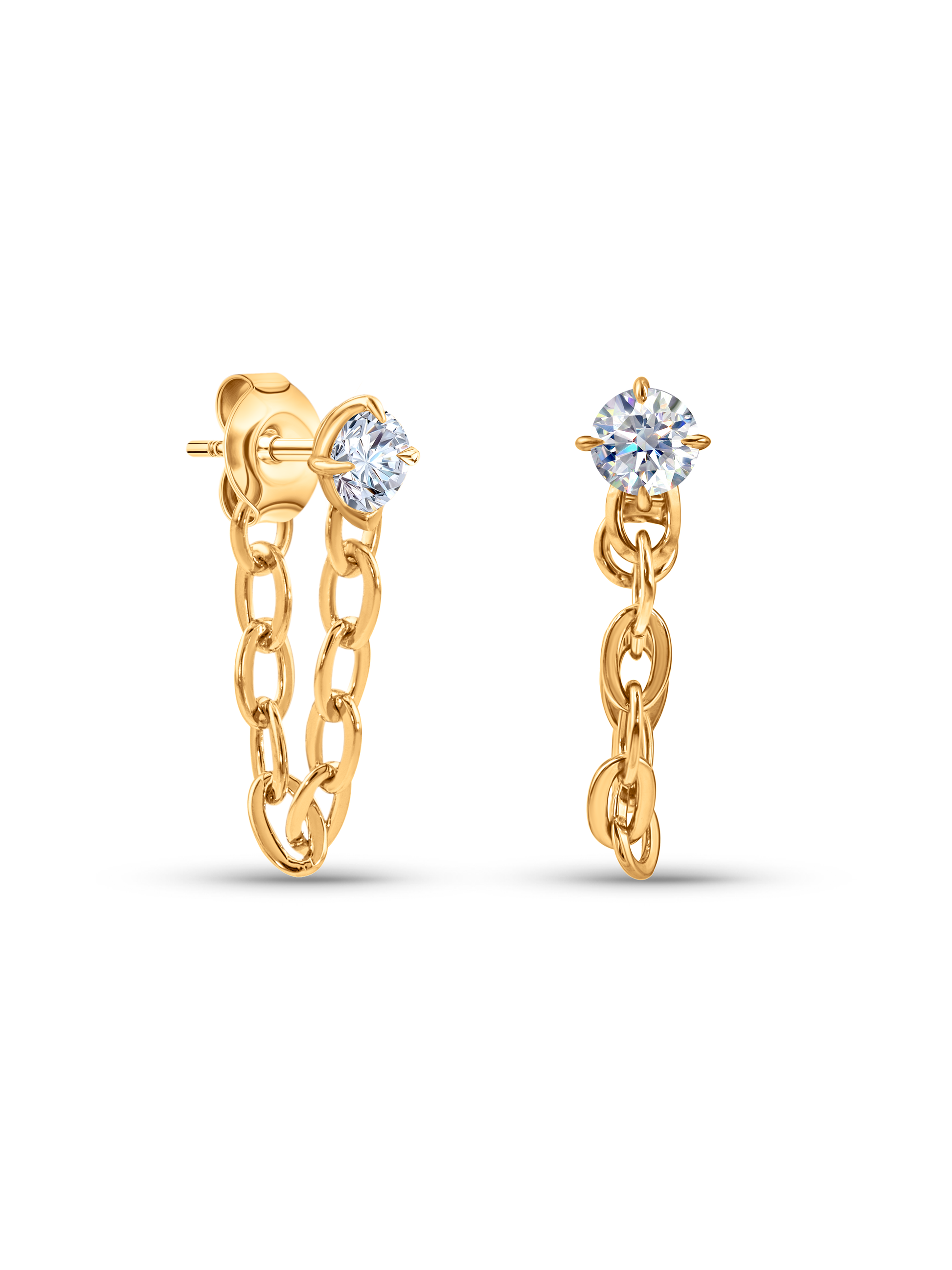Bold, but wearable. These Station Chain Drop Studs in Gold add dimension to your stack, featuring a singular Cubic Zirconia crystal and a chain detail that wraps around your lobe. Designed from Sterling Silver and 18K Gold Vermeil for added strength and shine.