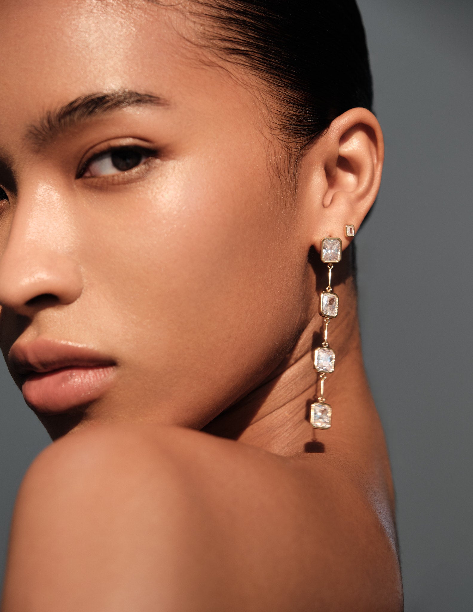 The ear stack staples you've been thinking about. Our Chunky Rectangle Crystal Studs create dimension, with a chunky style that works best contrasted with micro earrings. Designed from Sterling Silver, these have a golden, durable 18K Gold Vermeil plating.