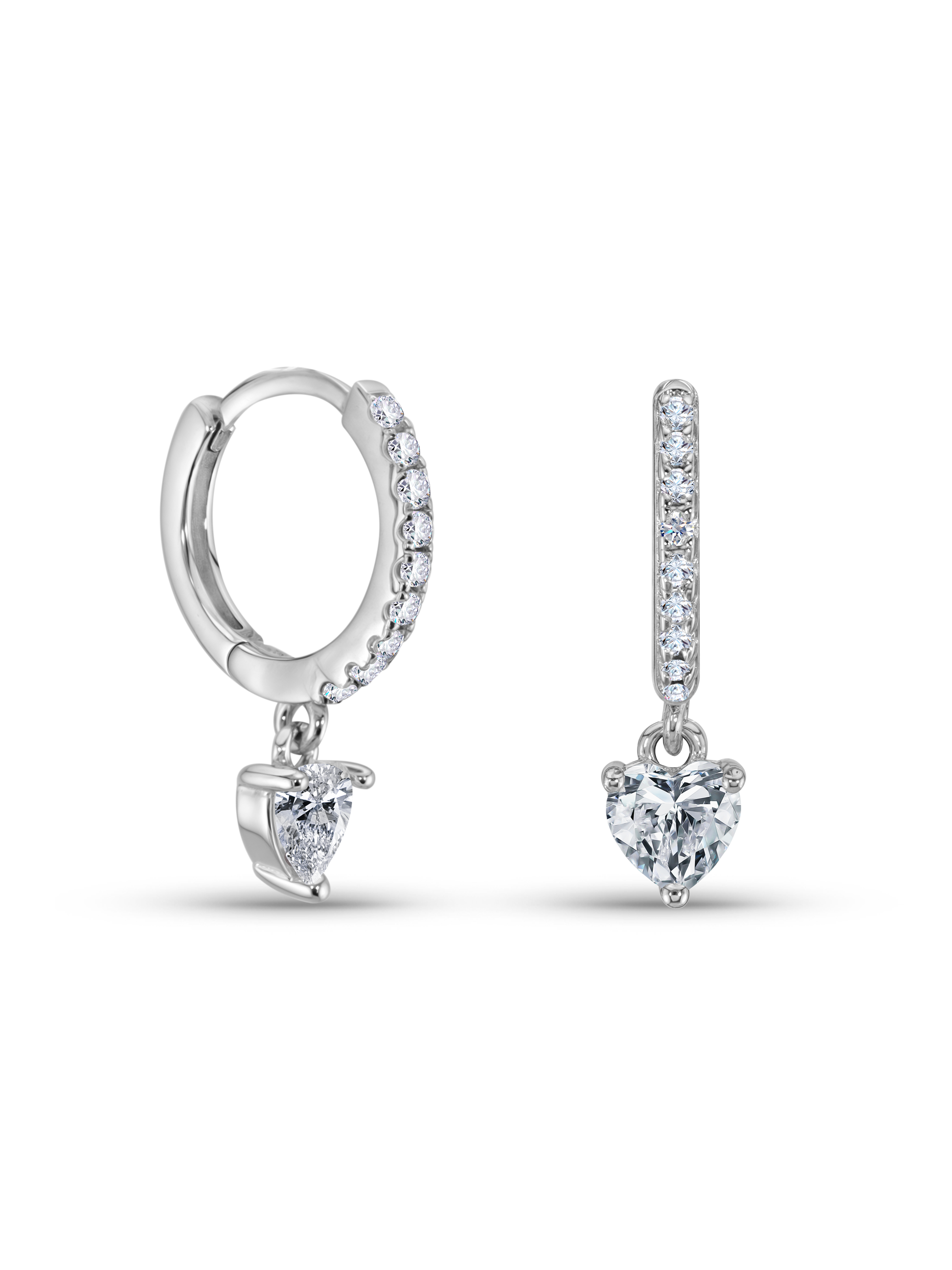 Your daily Ear Stack rotation just got better. Add dimension to your ear party with these Heart Crystal Drop Hoops, featuring mini hearts that drop down from the earring. Designed using Sterling Silver and 18K Gold Vermeil for a shiny, golden finish.