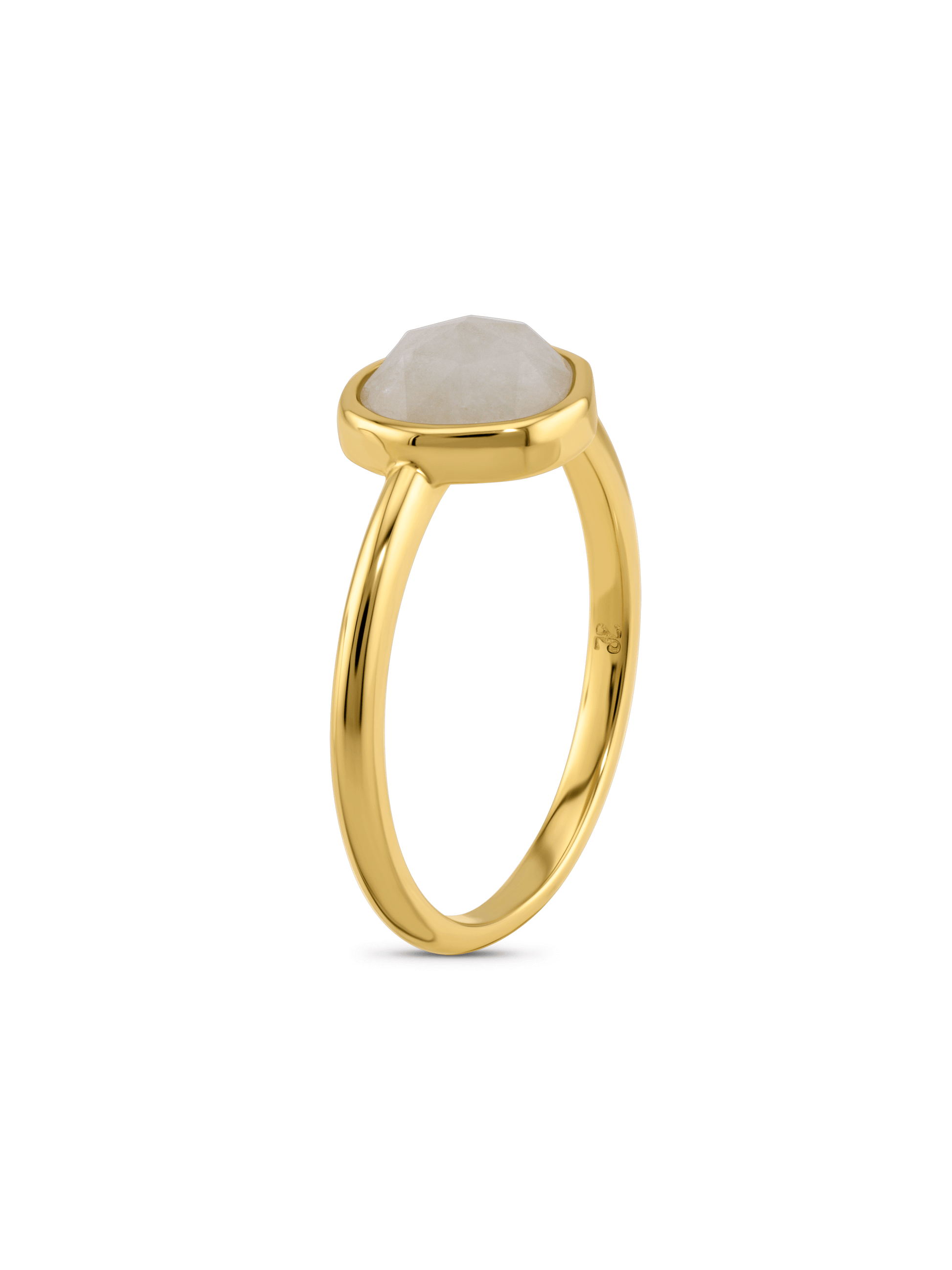 The sunshine escape you can wear. This irregular-shaped moonstone ring features aquamarine for a little bit of summer in your stack.