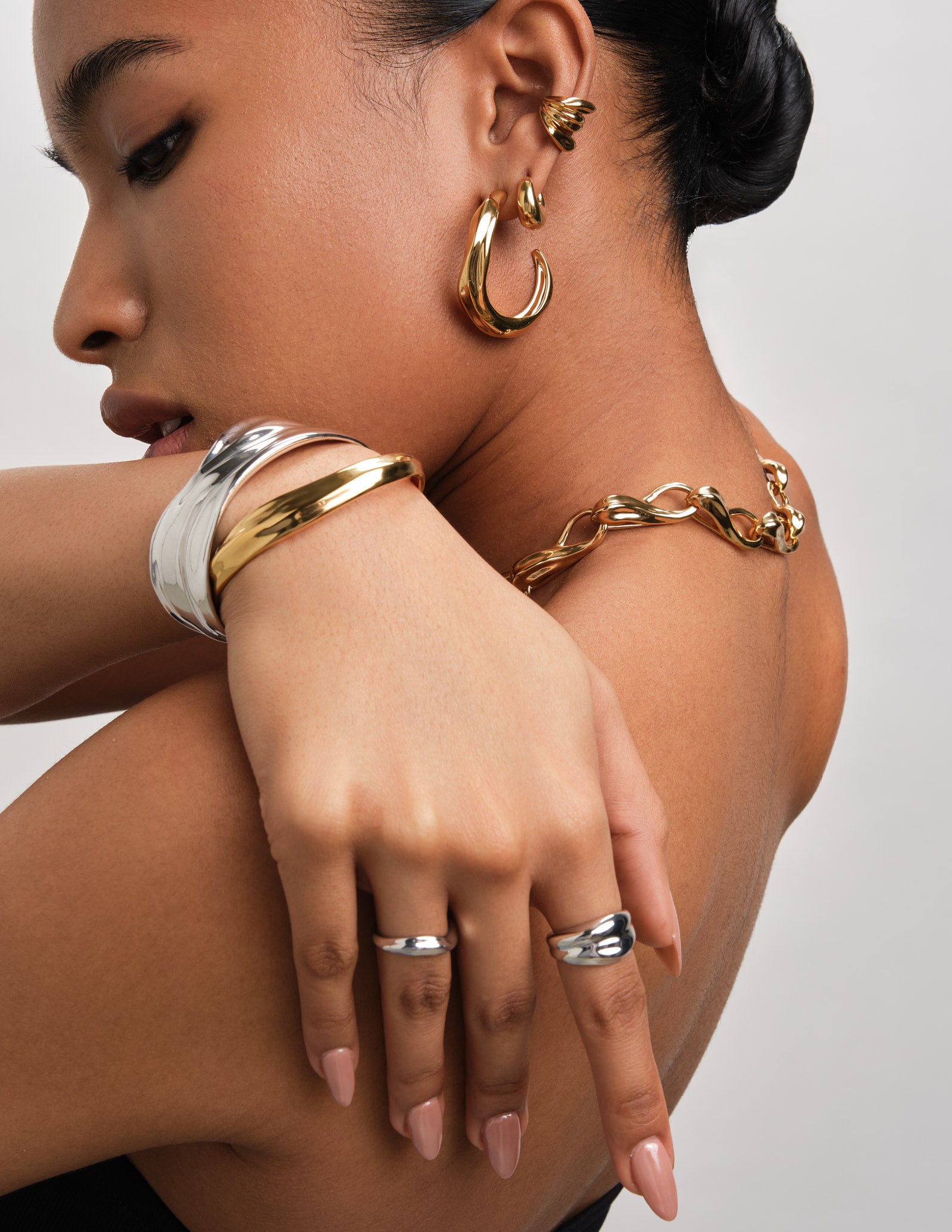 For the 'go with the flow' days. Style our Fluidity Chunky Ring in Silver with pavé pieces for additional texture. Made from Sterling Silver and finished with Rhodium plating for extra durability and a high-shine feel.