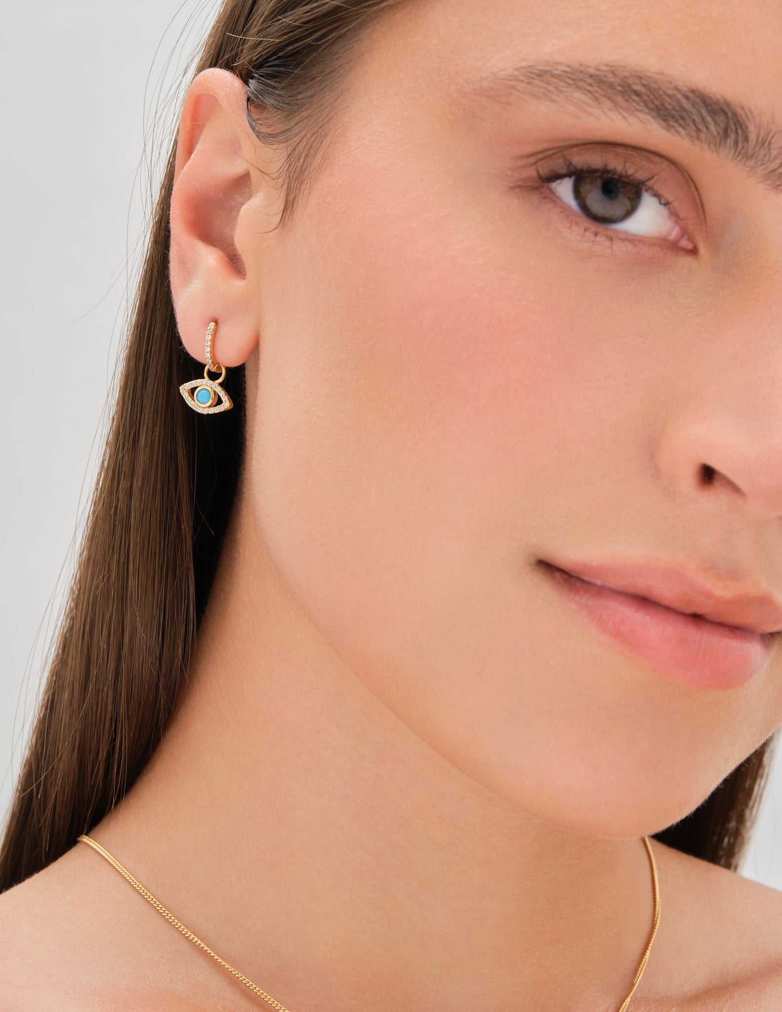 An accessory for your accessories. Add this Pavé Evil Eye Earring Charm, designed with pavé and set with a mini turquoise stone, our Charm Hoops. Designed from Sterling Silver and plated with 18K Gold Vermeil for added strength and shine.