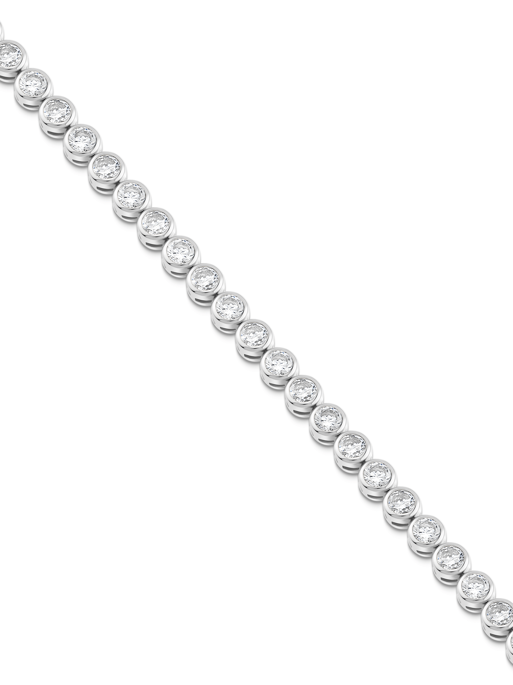 Elevated basics don't get better than this. This Round Crystal Tennis Bracelet goes with every outfit, from going out-out to office smart casual. Designed from Sterling Silver and with Rhodium plating for added durability and shine.