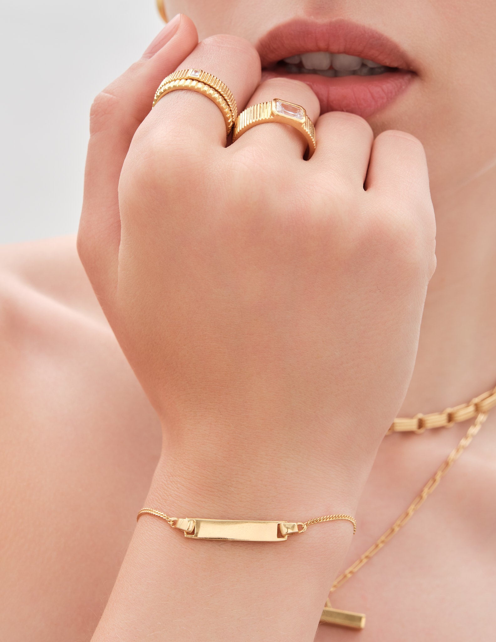 Curate the collection you've always wanted. Pair this minimalist, classic Bar Bracelet with the rest of your stack or give it an extra personal touch using our in-store Engraving service. Designed using 18K Gold Vermeil on its Sterling Silver base for added durability and shine.