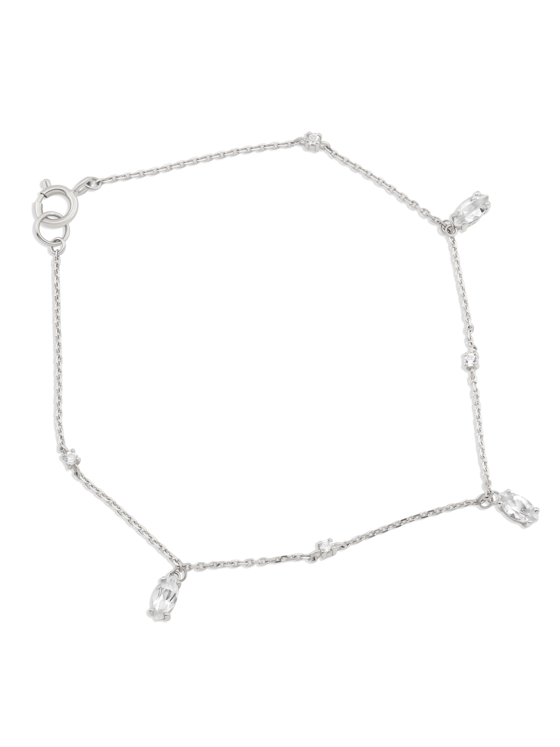 Fine and foundational. Our Fine 14K Gold White Topaz Drop Bracelet combines everyday delicacy with semi-precious White Topaz in several miniature drop-down details. Designed from 14K Solid White Gold for an investment piece you'll wear forever, zero tarnishing.