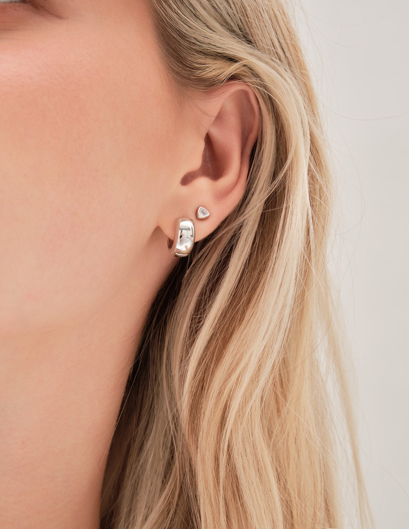 The mini huggies you'll wear with everything. These 10mm-sized Chubby Huggies in Silver are have a seamless look in a chubby style that adds some dimension to your stack, but small enough for everyday wear. Designed from Sterling Silver and Rhodium plating for added strength and a high-shine finish.