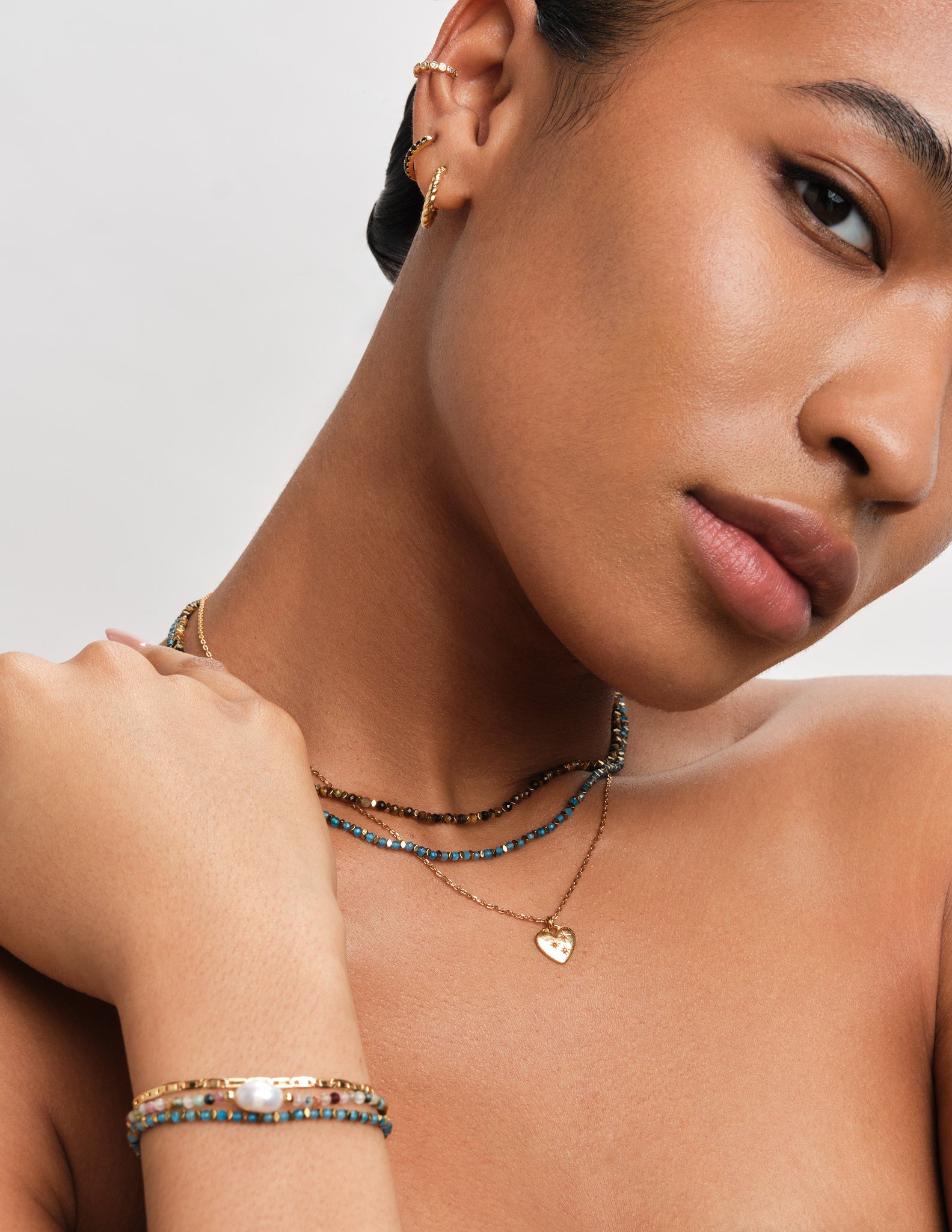 Store in a soft pouch or jewellery box, away from direct sunlight and heat. Avoid swimming or showering while wearing this kind of jewellery to prevent damage from chlorine and soapy water.