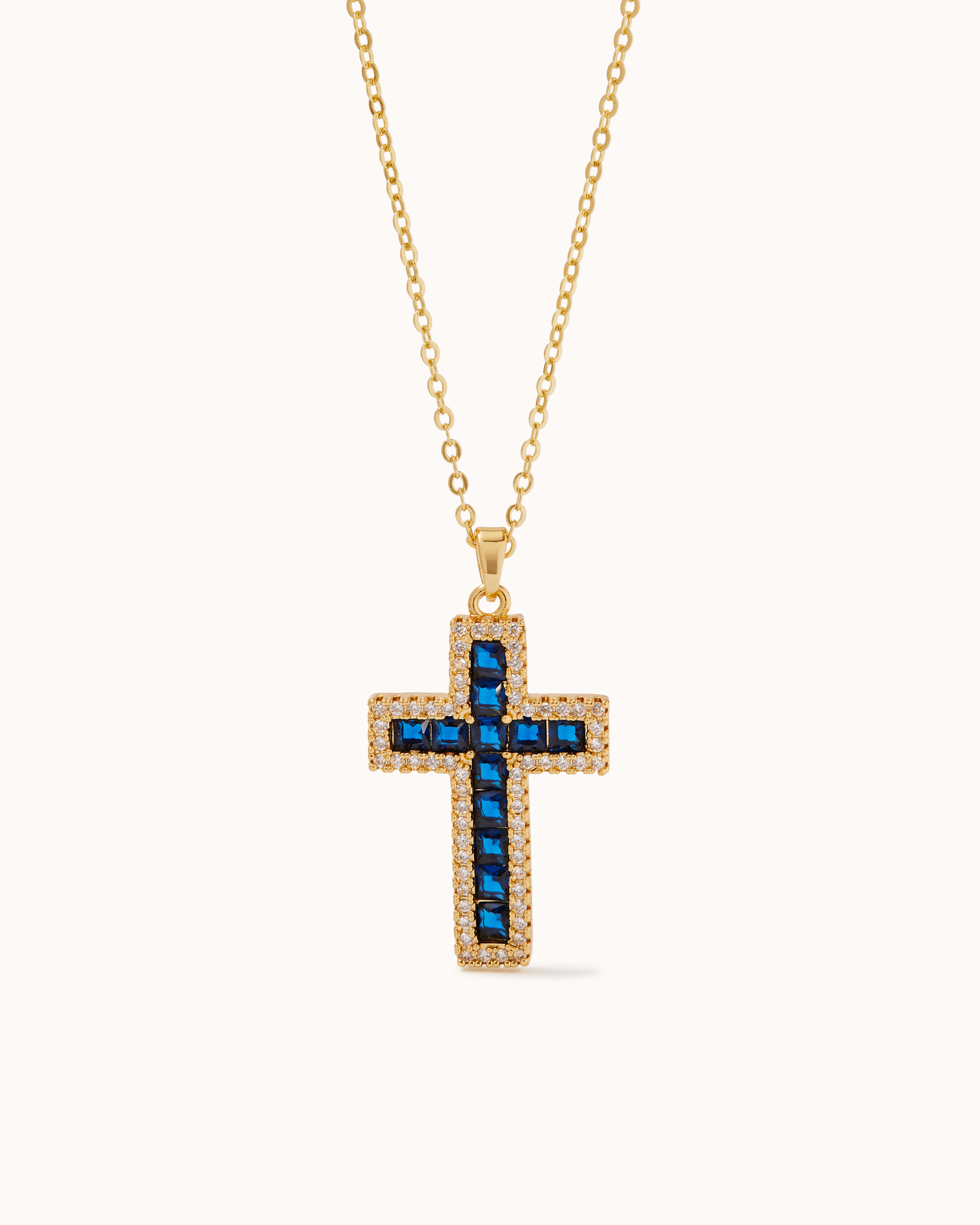 Cross Pendant Chain Necklace in Blue