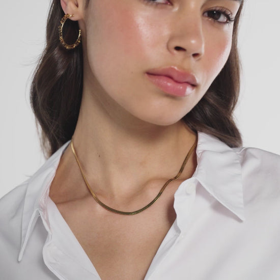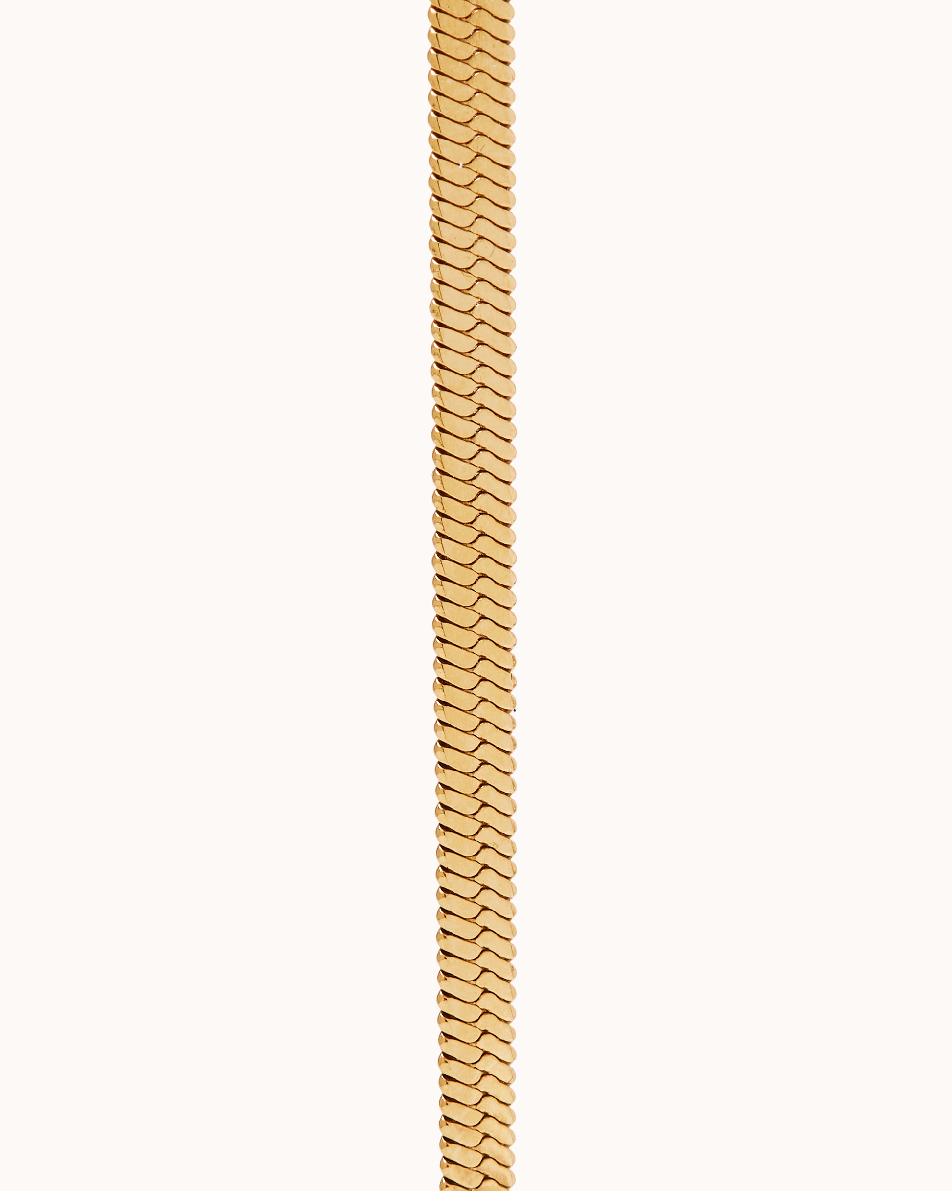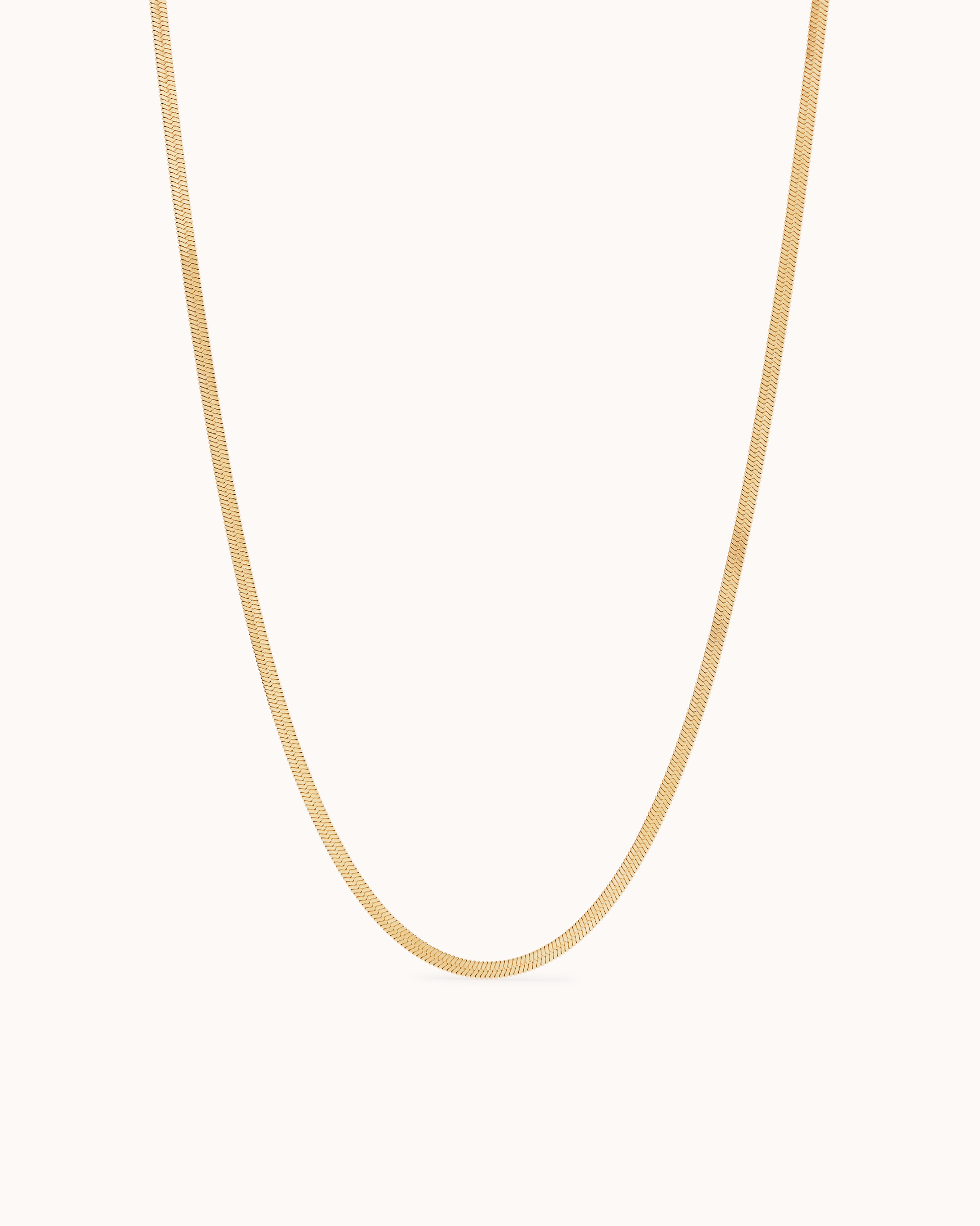 A waterproof chain you can style up or down. A classic style for any necklace stack, this Snake Chain Necklace in Gold catches the light from every angle. Made from 18K gold-plated stainless steel and PVD coated to give it a waterproof, tarnish-resistant finish.