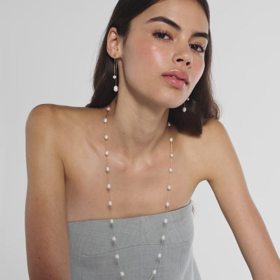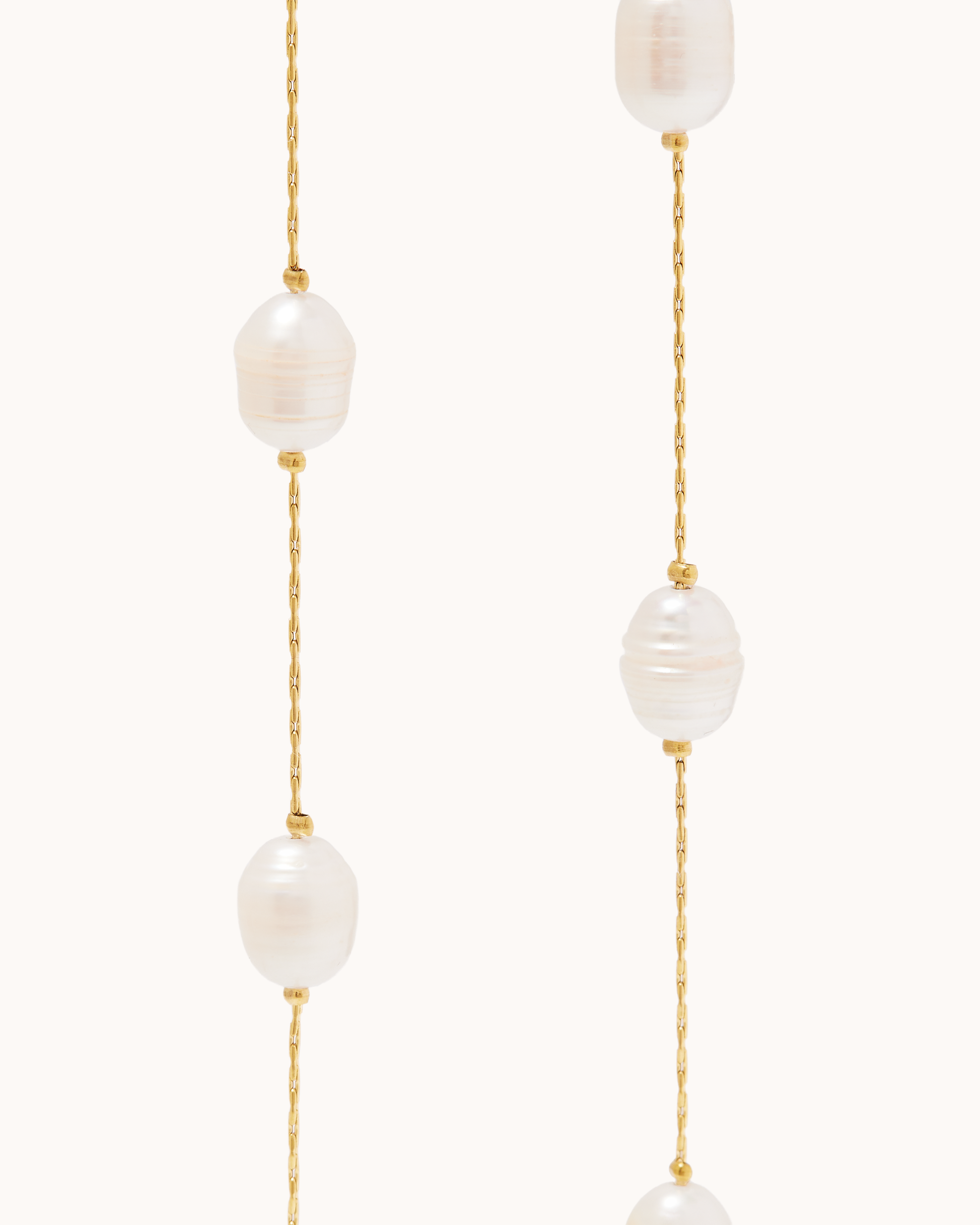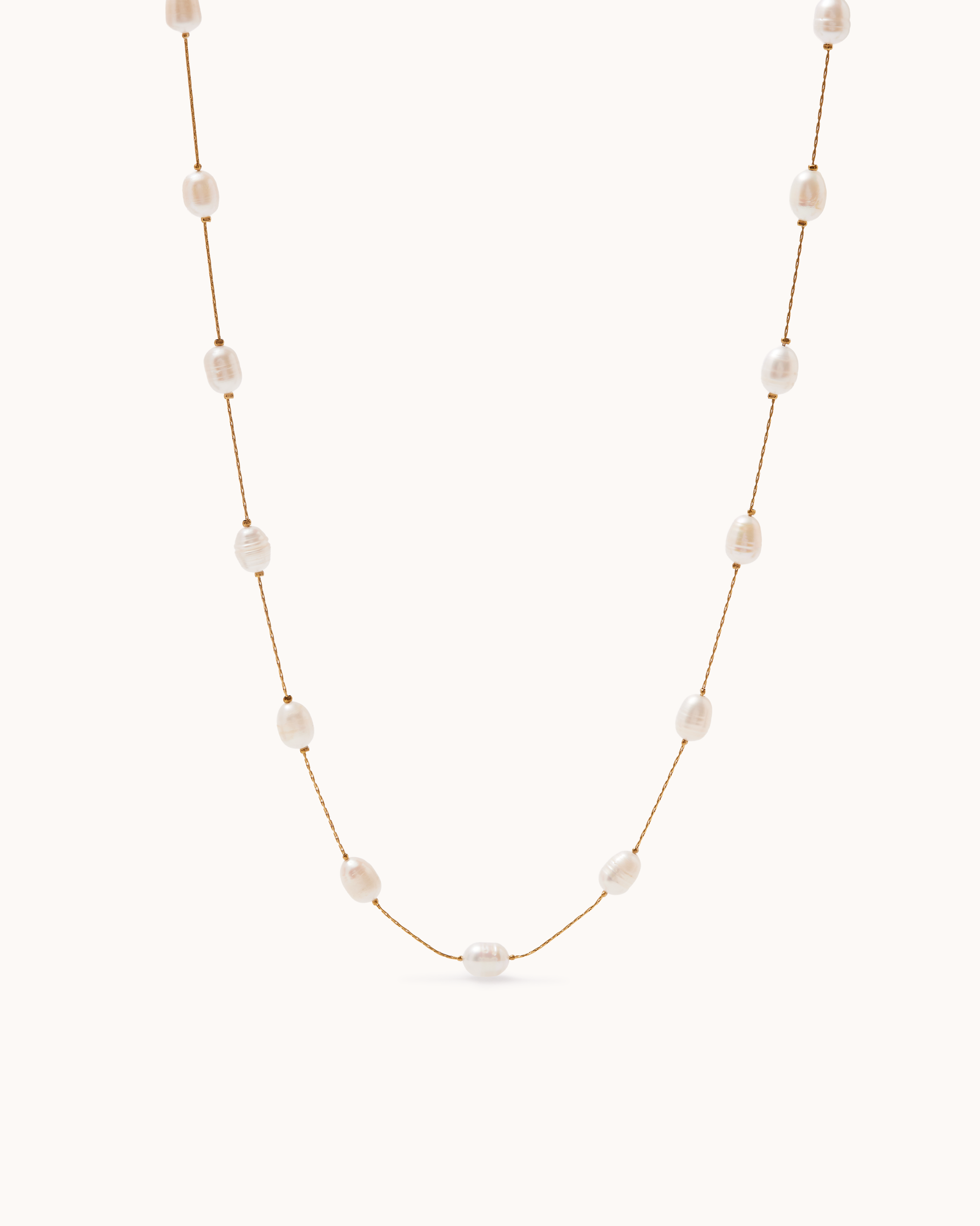 The timeless necklace made for the modern-day woman. Our Pearl Ball Chain Necklace features multiple freshwater pearl details set on a classic, daily-wear chain. Finished in 18K gold plating with a PVD coating keeping it anti-tarnish for longer.