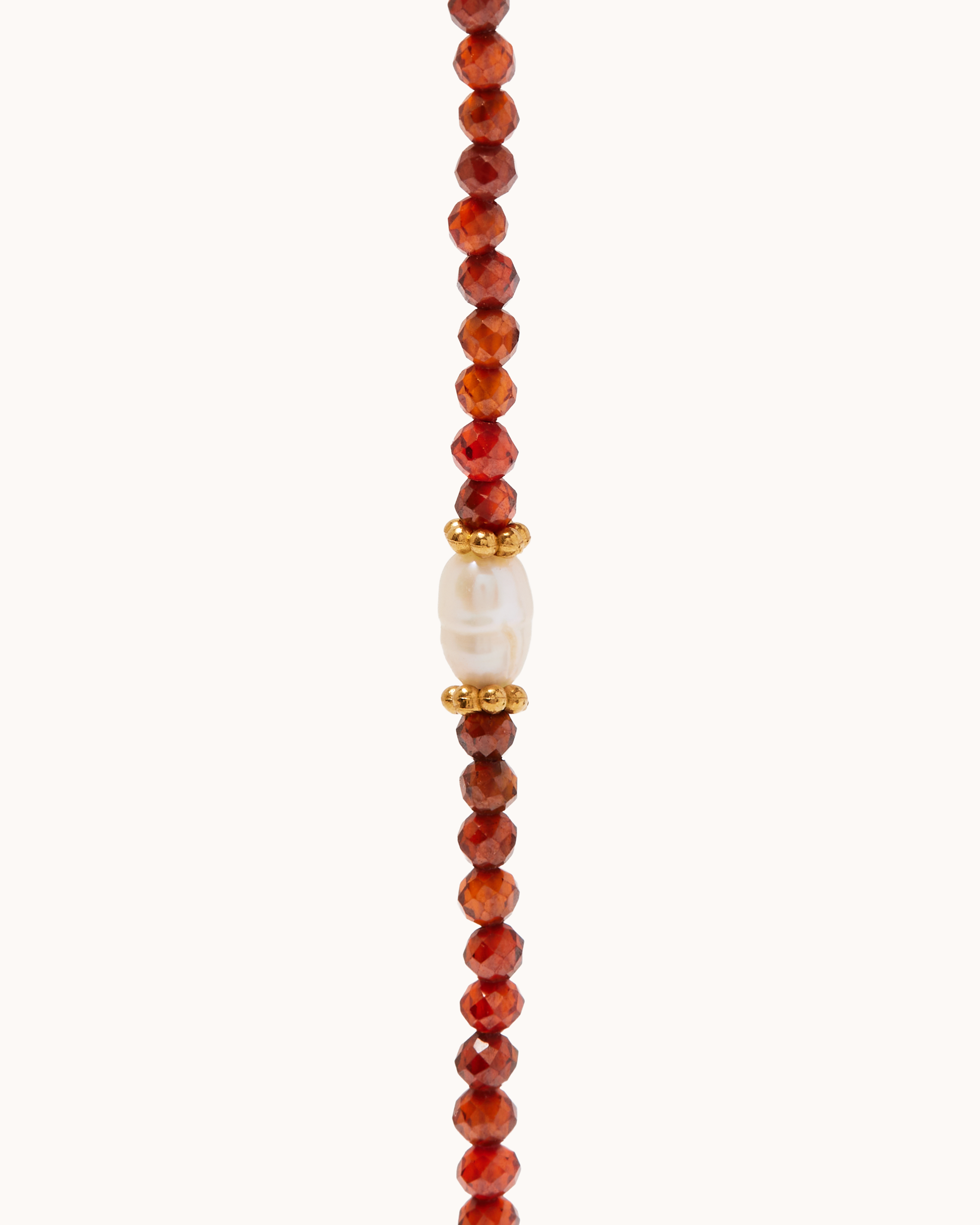 Beaded, delicate and waterproof — the ultimate everyday necklace. Our Semi-Precious Bead & Pearl Necklace combines brown-toned beading and a singular freshwater pearl for a relaxed feel. Wear with chunky, metal chains for contrast. Gold-plated, it's finished with a PVD coating to keep it waterproof and highly resistant to tarnishing.