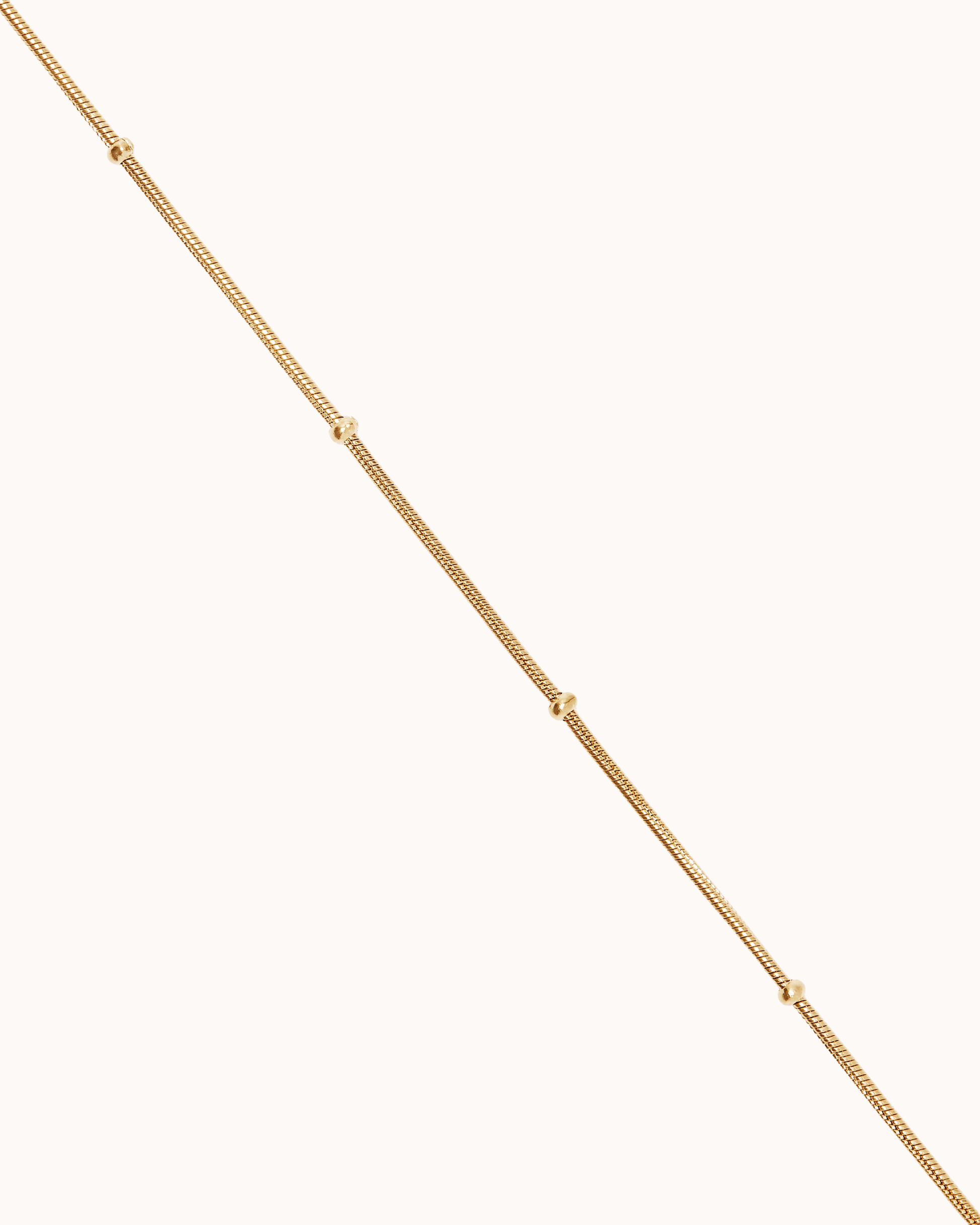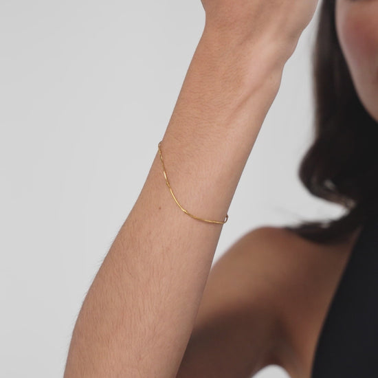 A classic waterproof chain for your 9-5 bracelet stack. This Box Chain Station Bracelet in Gold combines one of the most popular bracelet chain styles with station detailing. Pair with chunky chains for contrast. Featuring 18K gold plating and finished with a PVD coating that keeps it highly tarnish-resistant.