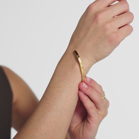 The bangle to build your arm stack with. This celestial-inspired Crystal Bangle in Gold is set with tiny cubic zirconia stars with an easy on-off hinge closure. Finished with rhodium plating and PVD coating, which keeps it tarnish-resistant for longer — shower, swim, sweat, live in it.